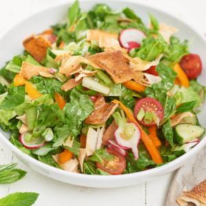Fattoush salad with crunchy greens.